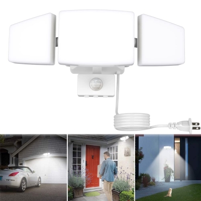 Depuley 35 W Plug-In liiketunnistinvalo ulkokäyttöön, ulkoinen LED-turvavalaisin, 3 säädettävää päätä, ilmaisintulvavalo autotallipihan kuisti patiolle IP65 vedenpitävä, 6500K