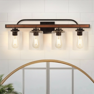 Depuley 4-Light Wall Sconces, Vintage Black Bathroom Vanity Light with 4 Clear Glass Shade, Modern LED Wall Mounted Lamp, Farmhouse Wall Light Fixture for Bedroom,Living Room,Porch, E26 Base, Pre-sale