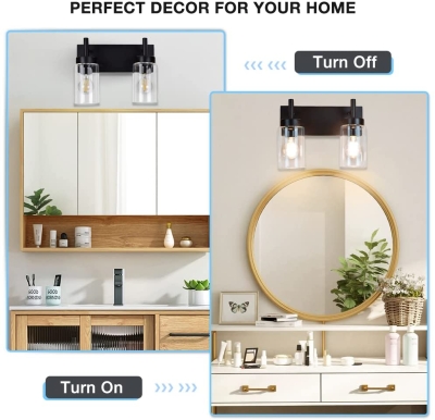 DLLT-seinävalaisimet, seinävalaisin, 2 valoa maalaistalon kylpylamppu kylpyhuoneeseen, eteinen, jauhehuone, keittiö, peili, kirkas lasivarjostin
