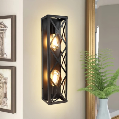DLLT teollisuusseinävalaisimet, 2 valon kylpyhuoneen valaisimet ontto metallikehyksellä, maalaistyylinen seinävalaisin kylpyhuoneeseen, eteiseen, peili, takka, E26-polttimo ei sisälly, ruskea musta