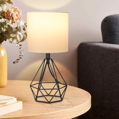 Depuley moderni geometrinen yöpöytävalaisin mustalla koverretulla metallipohjalla ja kangasvarjostimella