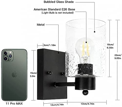 Depuley Black Bathroom Vanity seinävalaisin, vintage seinävalaisin kylpyhuoneessa, moderni seinävalaisin lasivarjostimella, rustiikkinen LED-seinävalaisin, teollinen seinävalaisin makuuhuoneeseen, ete