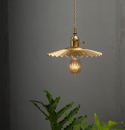 Kultainen harjattu messinkiriippuva LED-valaisin laskostettu tutu -muotoinen - Faredecor