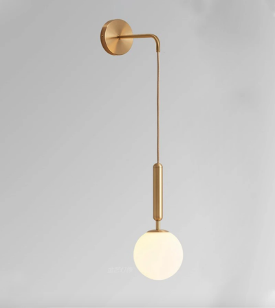 Riippuva Milky Glass Globe LED-seinävalaisin harjatulla messinkilampulla vuosisadan puolivälin moderniin tyyliin