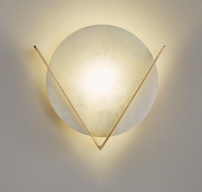 Tyylikäs marmorinen LED-seinävalaisin V-muotoisella kultaisella kehyksellä