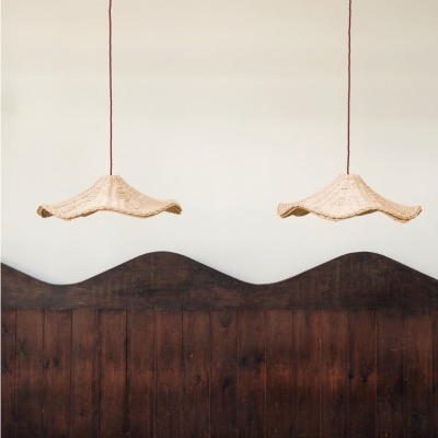 Maalaistalon käsinkudottu rottinkiriippuvainen lampunvarjostin