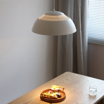 Moderni metallivalkoinen riippuvalaisin ruokapöytään