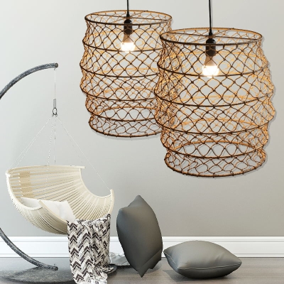 Creative Rottinkista riippuva valo Retro riippuvalaisimen varjostin