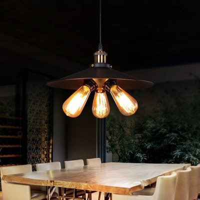 3-Lights Industrials Black Iron Hat riippuvalaisin olohuoneeseen