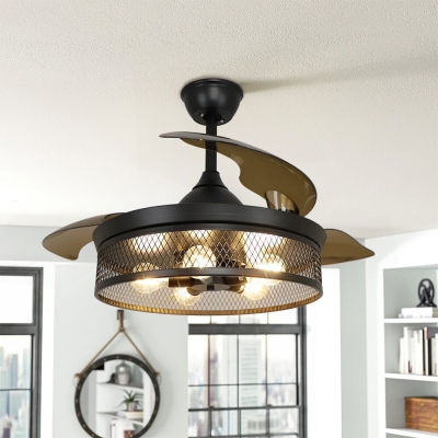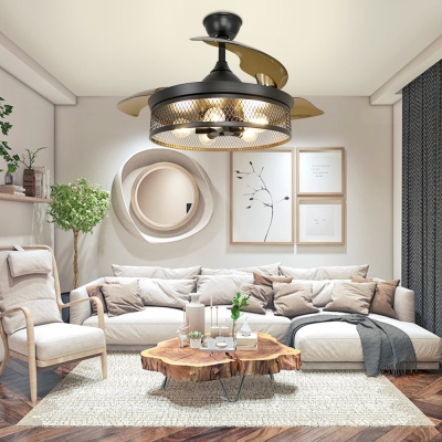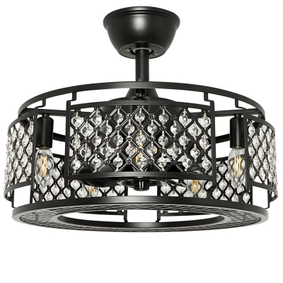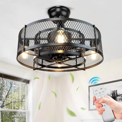 Depuley teollisuuskattotuuletin valoilla, vintage musta kattotuuletin kaukosäätimellä, häkkikattovalaisin sisäänvedettävällä terällä keittiöön, ruokasali, olohuone, 5 E26 pohja