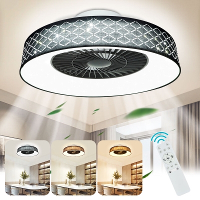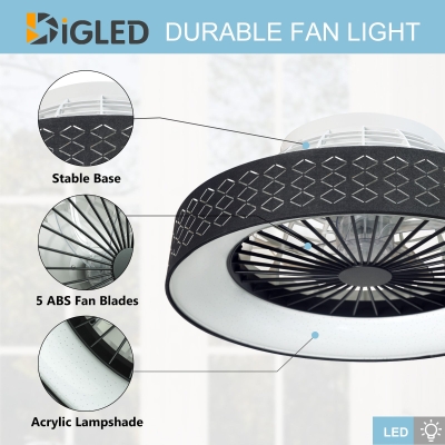 DIGLED matalaprofiilinen kattotuuletin - 22" terätön kattotuuletin valolla ja kaukosäätimellä, 3 väriä himmennettävä LED, 3 nopeutta, 5 lappua umpinainen kattotuuletin olohuoneeseen makuuhuoneeseen, e