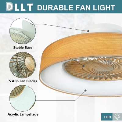 DLLT matalaprofiilinen kattotuuletin - 22,5 tuuman terätön kattotuuletin valolla ja kaukosäätimellä, 3 väriä himmennettävä LED, 3 nopeutta, 5 lappua umpinainen kattotuuletin olohuoneeseen, makuuhuonee