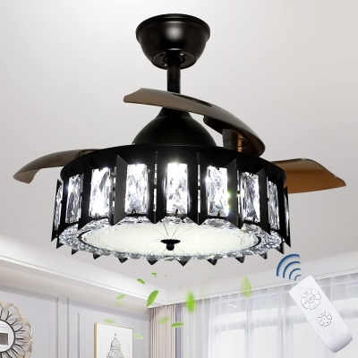 Depuley Crystal kattotuuletin valoilla, teollisuuskattotuuletin kaukosäätimellä, 27W/36W mustat kattotuulettimet, 3-lapainen sisäänvedettävä LED-tuulettimen kattokruunu olohuoneeseen, 3 väriä vaihdett