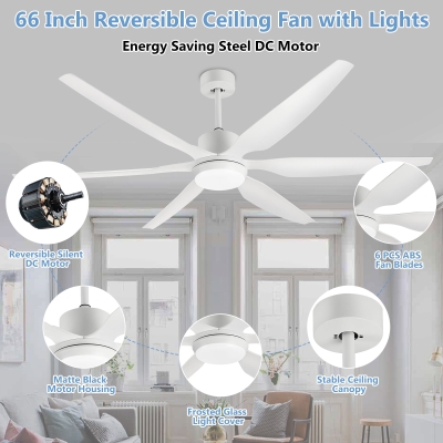 Depuley 66 tuuman valkoiset kattotuulettimet valojen kaukosäätimellä, 6-lapainen moderni kattotuuletin himmeillä LED-valoilla, sisä- ja ulkotiloihin patiolle, olohuoneeseen, makuuhuoneeseen, toimistoo