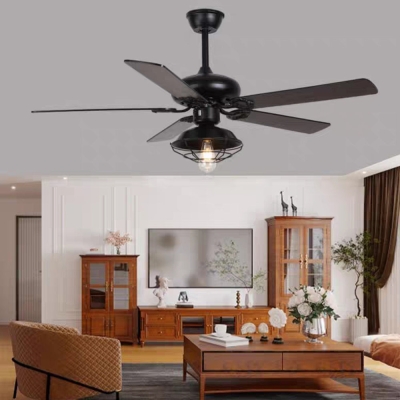Alessio Industrial 5-lapainen musta kattotuuletin valolla, 4 tyyliä, DIA 42,1"
