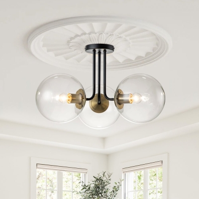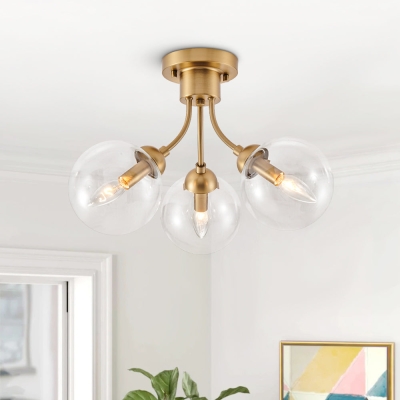3-kevyt messinkiryppäinen kirkas lasipallokuplakattovalo