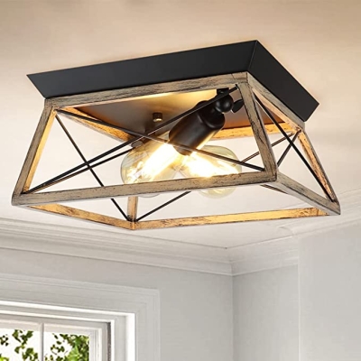 DLLT teollinen uppoasennettava kattovalaisin, neliönmuotoinen maalaistalo 2-valoa lähellä kattoa, maalaismainen metallikattolamppu puu-/mustamaalauksella keittiön makuuhuoneeseen, E26-jalusta