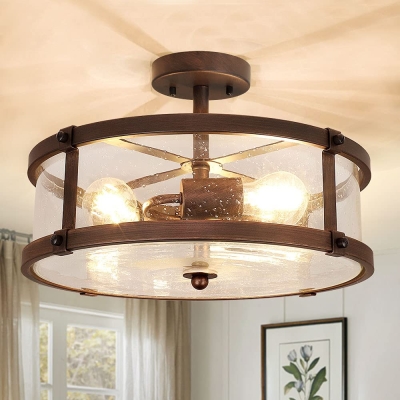 Depuley 3-Light Puolitasossa asennettava kattovalaisin, maalaistalon metalliset valaisimet kirkkaalla lasivarjostimella olohuoneeseen ruokasaliin keittiösaari käytävä Makuuhuoneen sisäänkäynti
