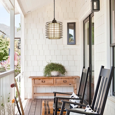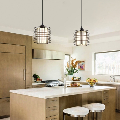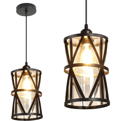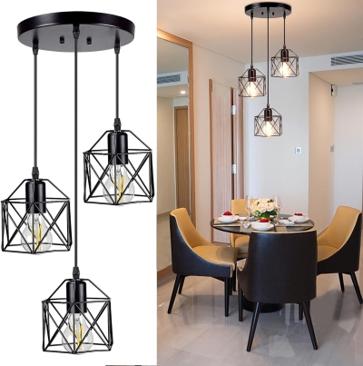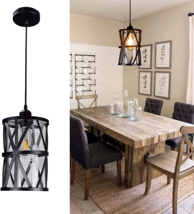 DLLT Vintage säädettävä riippuvalaisin, 6,88 tuuman metalliriippuva riippuvalaisin häkkivarjostimella, kattoon riippuva ruokailuvalaisin keittiösaareke/ruokailuaula/eteinen/baari, E26-jalusta