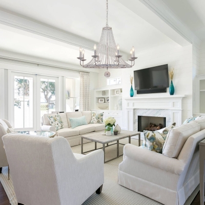 5-Light Distressed White Shabby Chic kynttilätyylinen kattokruunu
