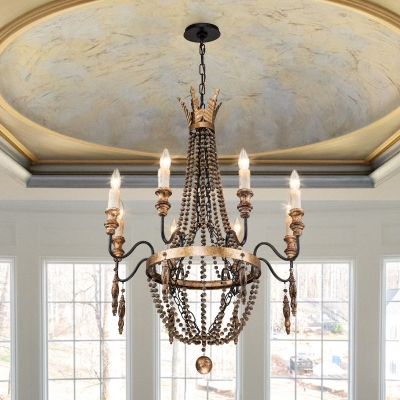 Antiikkipuuhelmillä koristeltu Empire-kattokruunu