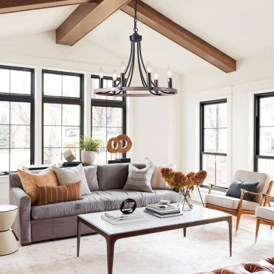 6-kevyt maalaistalon vaunun pyörän kattokruunu