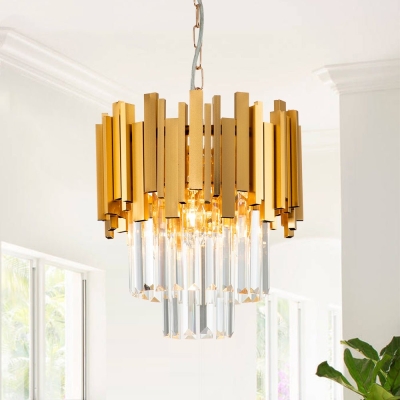 Kultainen 3-kevyinen porrastettu pyöreä kristallikruunu