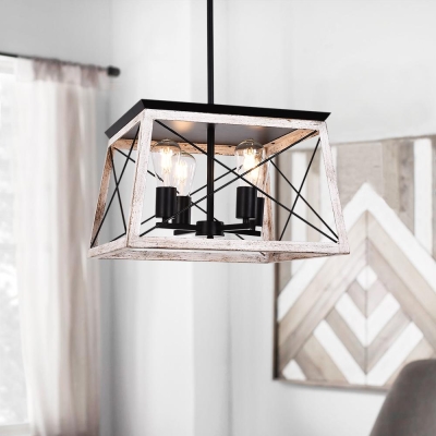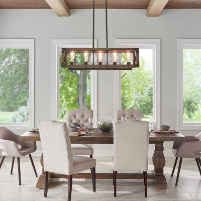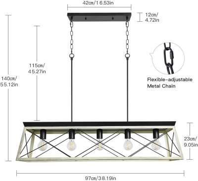 Depuley 5-Light Industrial Kitchen Island riippuvalaisin, maalaistalo metallinen kattokruunu valaisin kattoon ripustettu tammivalkoisella kehyksellä