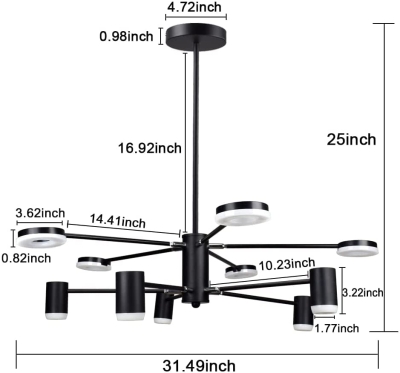 DLLT LED Sputnik kattokruunu, 10 valoa moderni riippuvalaisin, metallinen kattovalaisin säädettävä käsivarsi ja pää, vintage riippuvalaisin