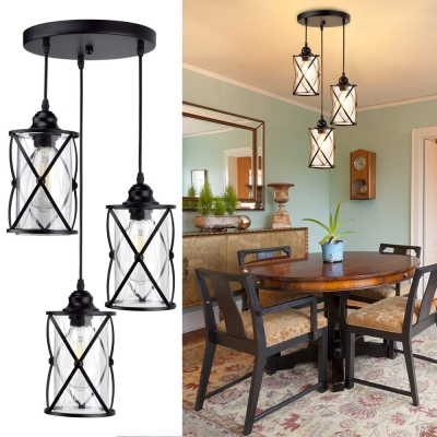 DLLT 3-kevyt teollisuusriippuvalaisin, musta metallihäkki riippuvat kattokruunuvalot lasivarjolla, vintage-tyylinen uppoasennettava Swag-valaisin keittiöön ruokasalin eteiseen makuuhuoneeseen