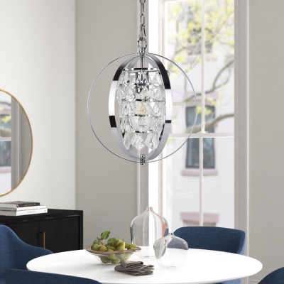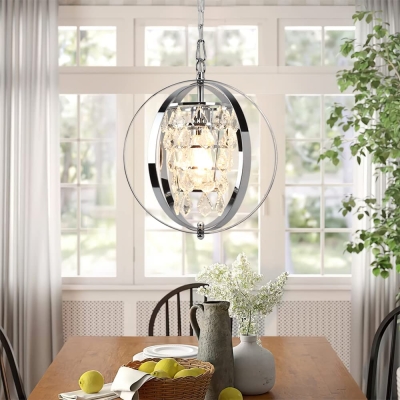 DLLT Modern Globe Crystal -kattokruunuvalaisin, teollisesti säädettävä uppoasennettava kattoriippuvalaisin metallikehyksellä, keittiöön olohuoneeseen eteiseen, makuuhuoneeseen, kromiviimeistely