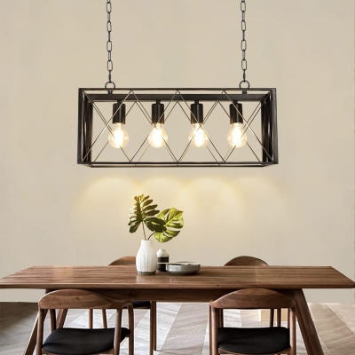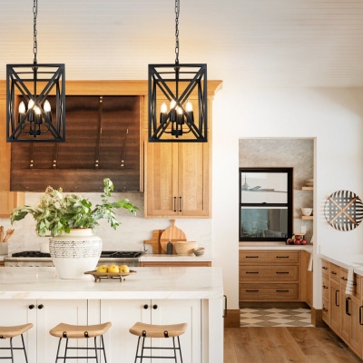 Depuley 4-Light Farmhouse Kitchen Island riippuvalaisin, teollinen musta kattokruunu valaisin kattoon ripustettu metallikehyksellä ruokasalin olohuoneravintolaan (E26-polttimot mukana)