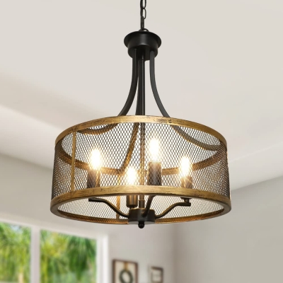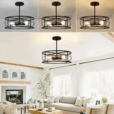 DLLT 4-vaaleanmusta pyöreä riippuvalaisin, 18 tuuman teollinen metallirumpuhäkki kattokruunu, maalaistalon riippuvalaisin ruokasaliin, keittiö, olohuone, makuuhuone, eteinen