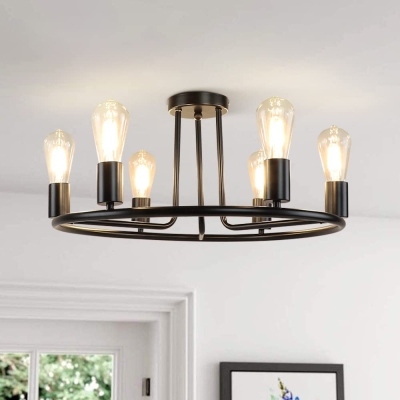 Depuley 6-Light Black Farmhouse Wagon Wheel -kattokruunu, Industrial Iron Kitchen Island -kattokruunu, ripustettava, pyöreä kattovalaisin