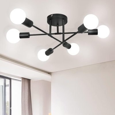 Depuley 6-Light moderni satelliittikattokruunuvalaistus, puoliksi upotettava Sputnik-kattovalaisin, teollisuuskeittiön valaistus saarelle, ruokasali, olohuone, makuuhuone, eteinen, musta