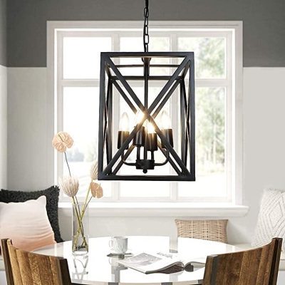 DLLT musta riippuvalaisin, 4-kevyt metallihäkki maalaistalon kattovalaistus, teollinen riippuva kattokruunu olohuoneeseen, keittiösaari, eteinen, ruokailutila, 4*E26-kanta (polttimot eivät sisälly)