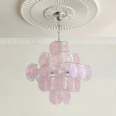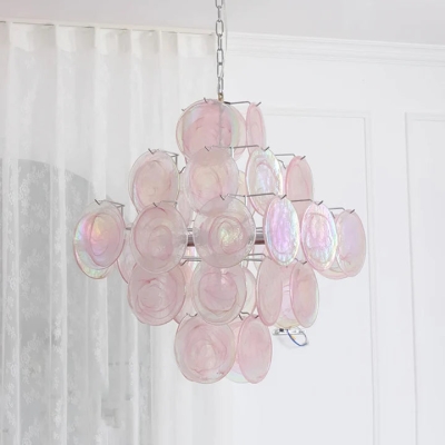 Vintage vaaleanpunainen Muranon lasikattokruunu