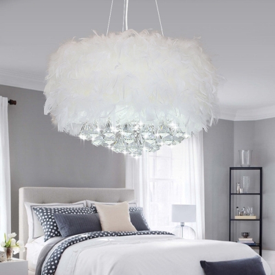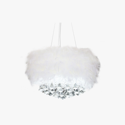 O'Moore Modern Luxury Pyöreä kattokruunu, höyhen/kristalli, valkoinen