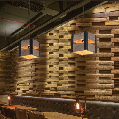 Alessio Retro suorakaiteen muotoinen metalli- ja puuriippuvalaisin, 5 päätä, 2 tyyliä