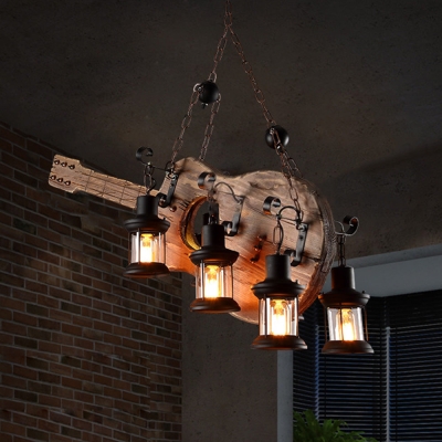 Austin Retro Guitar Metal & Wood Pendant Light, 4 Heads