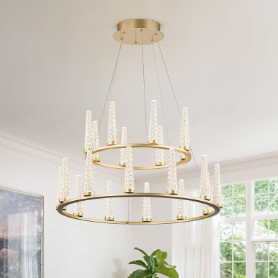 2-kerroksinen kultainen kynttilähimmennettävä pyöreä LED-kattokruunu