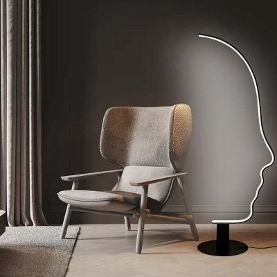 Edge Human Face Profile Moderni kaarilattiavalaisin, musta, metalli/pii