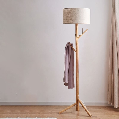 Ozawa Retro suorakaiteen muotoinen lattiavalaisin, puu ja kangas, makuuhuone