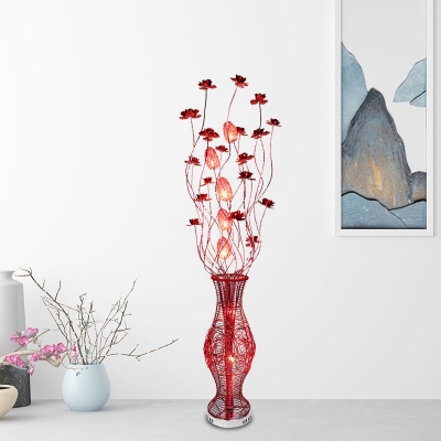 Bella Art Deco -kukkamaljakko, metallinen punainen lattiavalaisin, olohuone