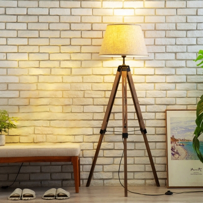Depuley LED Tripod Floor Lamp Wood Mid Century Modern Reading Lamp,8W Rustic Standing Lamps Farmhouse for Living Room Bedroom Study Room Bedside and Office, Flaxen Lamp Shade, Adjustable Height