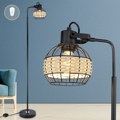 Depuley LED-lattiavalaisin, säädettävä kantavalaisin raskasmetallipohjaisella, maalaistalon korkeat rottinkilattiavalaisimet lukuvalaistus