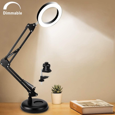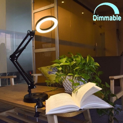 Depuley himmennettävä kääntövarsi pöytälamppu puristimella, 68 LED joustava Architect-työvalaisin, 3 väriä 10 kirkkautta, säädettävä pöytälamppu, moniliitospöytälamppu