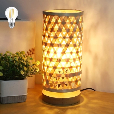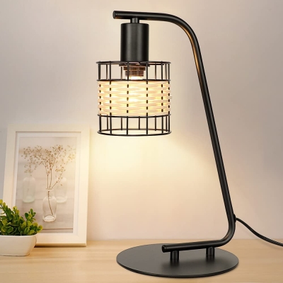 Depuley Industrial musta pöytävalaisin, moderni yöpöytälamppu rottinkivarjostimella, LED-lukupöytälamppu vakaalla pohjalla ja ohjauskytkimellä makuuhuoneeseen, työhuoneeseen, sängyn puolelle, olohuone