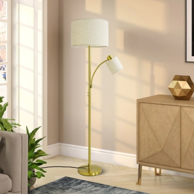 DLLT maalaismaiset lattiavalaisimet olohuoneeseen, moderni korkea napavalo säädettävällä lukuvalolla, vintage seisomalamppu nykyaikaiseen vuosisadan puolivälin makuuhuoneeseen, työhuone, kangasvarjost