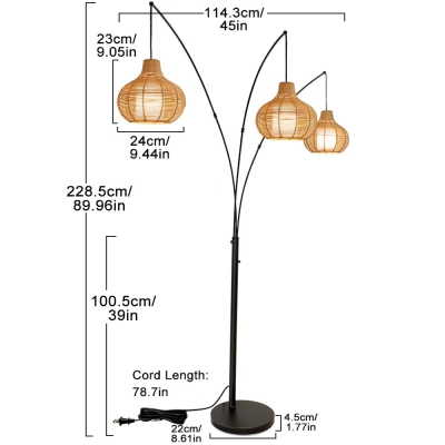 Depuley 3-Light LED-rottinkilattiavalaisin, säädettävä moderni korkea seisomalamppu, maalaistalon valokaaren lattiavalaisin bambulampunvarjostimilla makuuhuoneen olohuoneeseen, toimistotyöskentelyyn (